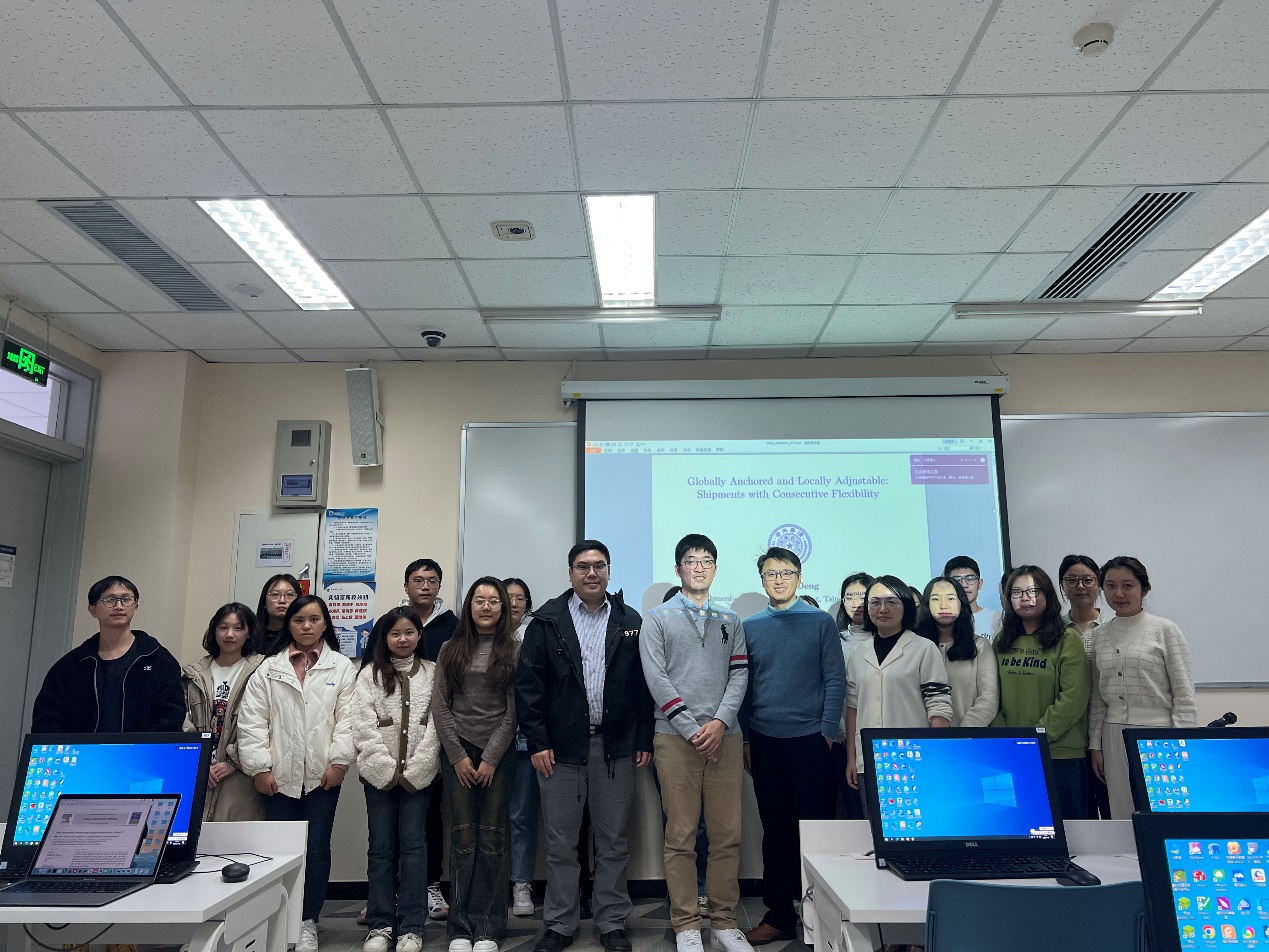 2023年11月8日下午2时,于沙河4号楼106,清华大学副教授、博士生导师邓天虎应邀在建设经济与管理系列论坛上作《Globally Anchored and Locally Adjustable: Shipments with Consecutive Flexibility》主题报告。报告由建设经济与管理系吴国滨老师主持,公司副经理李玉龙教授、建设经济与管理系主任杨帆副教授、管理科学系教工党支部书记陈俊霖副教授、工程与项目管理和管理科学23级研究生参与了本次主题报告。