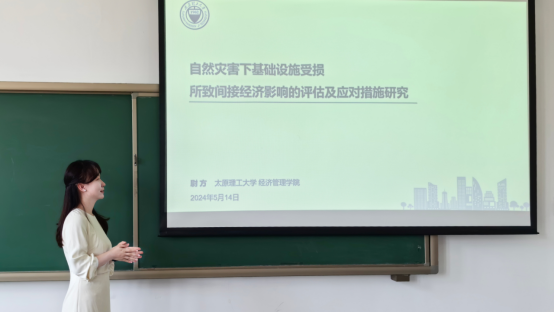 2024年5月14日上午,于沙河校区二教207,太原理工大学经济管理公司副教授尉方应邀在《工程与项目管理研究方法论》课上作《自然灾害下基础设施受损所致间接经济影响的评估及应对措施研究》主题报告。报告由xc体育建设经济与管理系副主任茅权博士主持,工程与项目管理一年级研究生参加了本次主题报告。