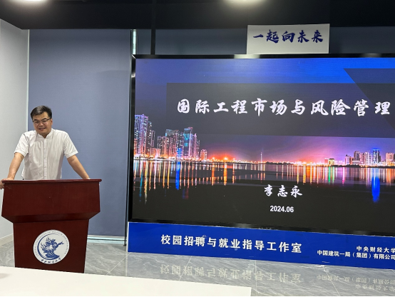 2024年6月15日晚上,中建国际建设有限公司总法律顾问兼首席合规官李志永先生应邀在公司公司南路校区学术会堂102作《国际工程市场与风险管理》实践讲座,讲座由建设经济与管理系高然老师主持,MEM 2023级学员参加本次讲座。