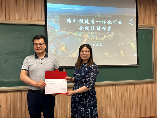 2024年6月22日晚上,中建国际建设有限公司总法律顾问兼首席合规官李志永先生应邀在公司公司南路校区主教207作《国际工程合约与法律体系》实践讲座,讲座由建设经济与管理系高然老师主持,MEM 2023级学员参加本次讲座。