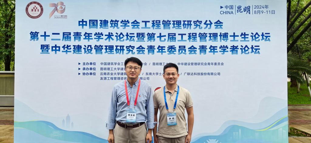 由中国建筑学会工程管理研究分会、昆明理工大学和中华建设管理研究会青年委员会联合主办的中国建筑学会工程管理研究分会第十二届青年学术论坛暨第七届工程管理博士生论坛暨中华建设管理研究会青年委员会青年学者论坛,于2024年8月9-11日在云南省昆明市召开。本次会议主题“工程管理变革与新质生产力”,将聚焦工程管理变革新范式,面向工程管理前沿热点与重大工程需求,以新质生产力助力建筑业高质量发展。公司副经理李玉龙教授、建设经济与管理系副主任茅权博士参加会议。