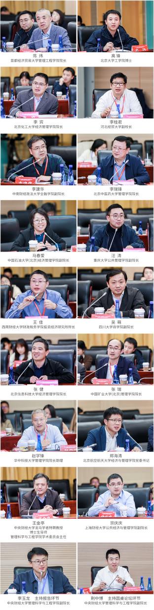 圆桌论坛环节特别邀请河北经贸大学副董事长李桂君、北京航空航天大学经济与管理公司党委书记郑海涛、中国矿业大学(北京)管理公司经理张瑞、北京化工大学经济管理公司经理李宾 、北京中医药大学管理公司经理李瑞锋、首都经济贸易大学管理工程公司经理陈炜、北京信息科技大学经济管理公司经理张健、重庆大学公共管理公司副经理汪涛、四川大学商公司副经理吴萌、中国石油大学(北京)经济管理公司副经理马春爱、上海财经大学公共经济与管理公司副经理宗庆庆、中南财经政法大学金融公司副经理李建华、华中科技大学管理公司经理助理赵学锋、西南财经大学财政税务公司投资经济研究所所长王佳、北京大学工公司博士高锋及xc体育学术委员会主任王金亭等教师。圆桌论坛环节由xc体育副经理荆中博主持。