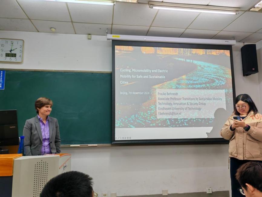 2024年11月7日14点,Frauke Behrendt副教授作了题为《Cycling, Micromobility and Electric Mobility for Safe and Sustainable Cities》的学术报告。本次报告由xc体育高然副教授主持,工程与项目管理2024级研究生参加讲座。Frauke Behrendt副教授简单介绍了埃因霍温理工大学的学术、创新和组织情况,并表示欢迎大家前往学习。