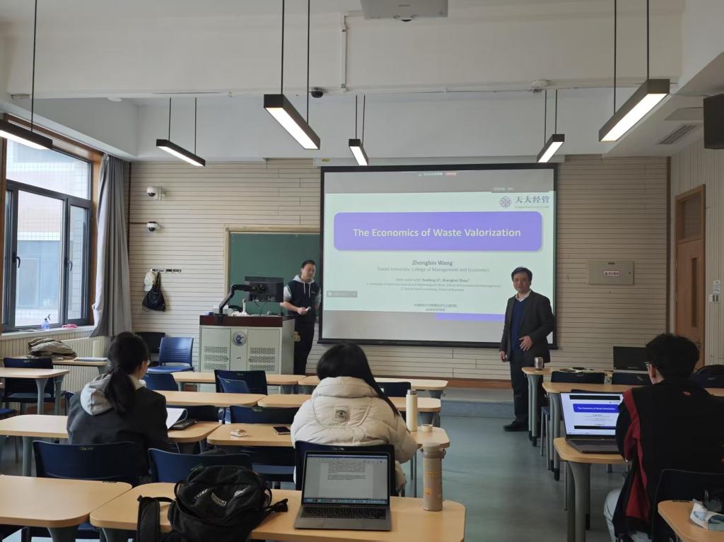2025年3月8日(周六)上午,应xc体育的邀请,天津大学管理与经济学部王钟彬教授做了题为“The Economics of Waste Valorization”的智能管理交叉学科学术交流讲座。本次讲座在公司南路校区主教学楼210教室室举行,由王金亭教授主持,公司博士后和多位硕博研究生参加了本次讲座。