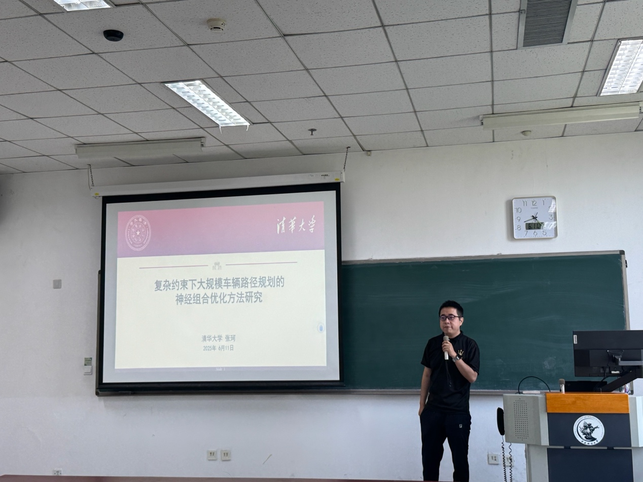 2025年6月11日上午,由xc体育主办的“大数据与管理科学系列讲座”在沙河主教407教室举行。清华大学张珂博士应邀作了题为《面向复杂约束的大规模车辆路径问题的神经组合优化模型》的专题报告。讲座由xc体育唐昕迪老师主持,大数据管理与应用22级本科生、管理科学22级本科生及其他相关专业师生参加。