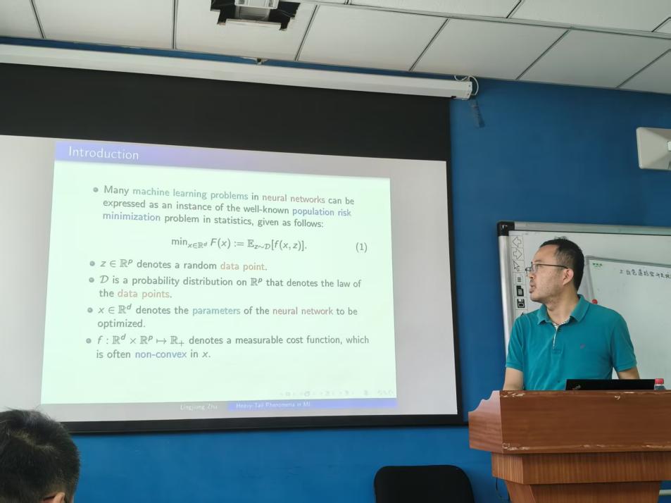 2025年6月24日,xc体育邀请佛罗里达州立大学数学系朱凌炯教授来访交流,并作题为《Heavy-Tail Phenomena in Machine Learning》的学术讲座。本次讲座围绕机器学习中梯度算法的泛化能力与“重尾现象”这一前沿议题展开,吸引了众多对数学、人工智能与优化理论感兴趣的师生与研究人员积极参加。