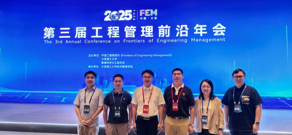 2025年7月4日-7月6日,“第三届工程管理前沿学术年会”(FEM2025)在大连召开。公司副经理李玉龙教授带队,建设经济与管理系王昊教授、管理科学系陈俊霖教授、建设经济与管理系青年教师茅权博士和吴国滨博士、管理科学系青年教师吴迪博士参加了本次学术年会。