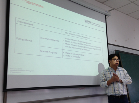 2016年6月30日上午10:00-12:00,新加坡国立大学设计与环境公司建造系Jacky Chung助理教授来公司xc体育进行学术交流报告,报告题目为“BUILDING INFORMATION MODELING (BIM): TRENDS, BENEFITS, AND CHALLENGES FOR THE AEC INDUSTRY IN SINGAPORE”,主要介绍了建筑信息模型(BIM)在新加坡建筑产业中的实践与应用。此外,Chung博士还向在座的研究生和本科生介绍了新加坡国立大学设计与环境公司在硕士和博士招生以及员工交流方面的情况。学术报告结束后部分公司老师与Chung博士还就相关研究展开了热烈的讨论,收到了很好的效果。