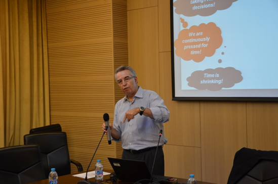 Prof. Gregory P. Prastacos首先就针对复杂问题如何做出最佳决策与到场同学进行交流。他介绍了很多方法如CSF(Critical Success Factors)、KPI(Key Performance Indicator)以及(Balanced Score Card)平衡计分卡等来协助企业做出正确决策。