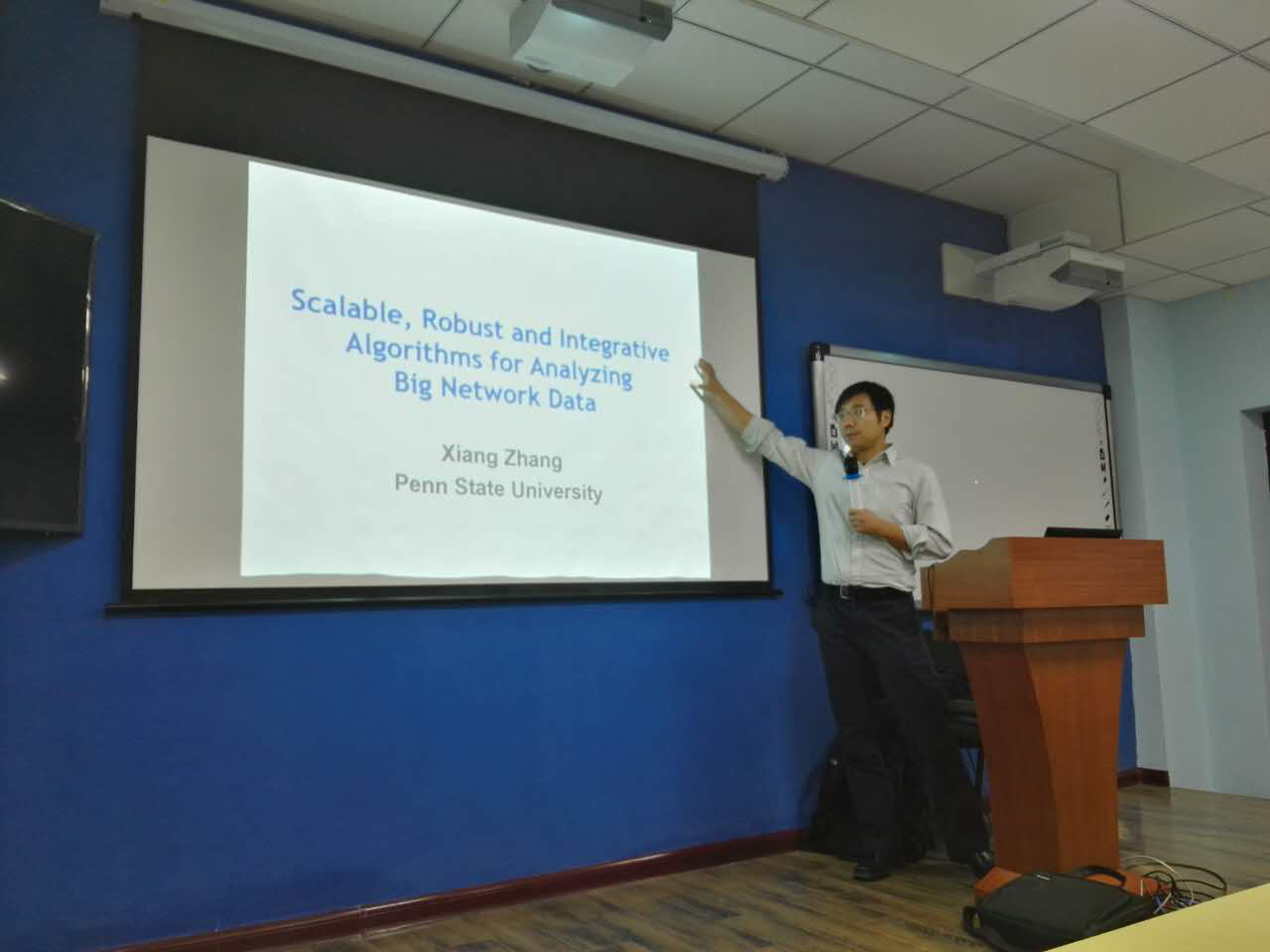 12月2日下午,应公司xc体育管理科学系陈俊霖副教授的邀请,美国宾西法尼亚州立大学信息科学和技术公司张翔副教授来到公司,在公司南路校区主教309作了“Scalable, Robust and Integrative Algorithms for Analyzing Big Network Data”专题讲座。