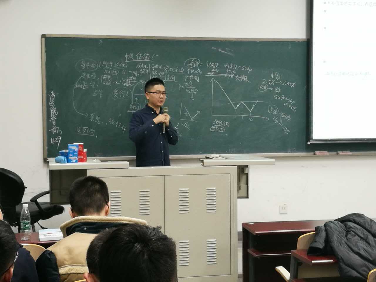 2016年11月29日晚6:30—9:00,受xc体育投资系邀请,华创证券分析师李俊江在沙河主教405教室为大家做了一次关于中国债券市场投资策略和研究的讲座。