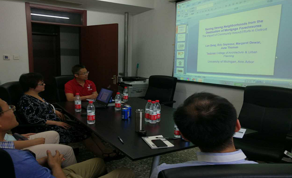 2017年7月6日, 美国密歇根大学建筑与城市规划公司城市规划系的邓岚副教授在xcsports公司南路校区为广大师生带来了主题为“从抵押赎回权丧失中拯救强大的社区:底特律社区努力的影响”的讲座,xc体育的王志锋教授、易成栋教授等教师和公司的部分博士生们一起参加了讲座。