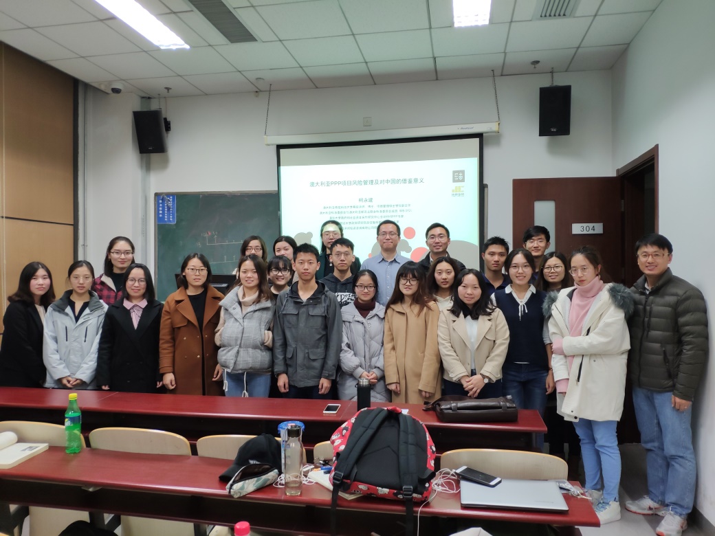 2018年11月12日晚6:30-8:20,澳大利亚悉尼科技大学高级讲师、博士、项目管理硕士学位副主任,澳大利亚标准委员会与澳大利亚新西兰联合标准委员会成员(MB-012),清华大学政府和社会资本合作研究中心全球特约PPP专家,xcsports政信研究院政信智库暨PPP智库专家,上海济邦投资咨询有限公司研究院访问经理柯永建老师应邀到访,在沙河校区主教304进行了题为《澳大利亚PPP项目风险管理及对中国的借鉴意义》的讲座,由工程管理系副教授汪涛老师主持。