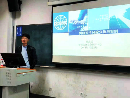 20181029日晚6:30-8:20,中国信息安全测评中心副研究员梁露露博士应邀到访,在沙河校区主教304进行了题为《网络安全风险分析与案例分享》的讲座,由工程管理系副教授汪涛老师主持。梁露露博士毕业于北京交通大学通信与信息系统专业。2012年进入中国信息安全测评中心,主要负责信息系统风险评估、等级保护测评等,研究方向包括网络安全标准体系,数据安全、云计算安全等。