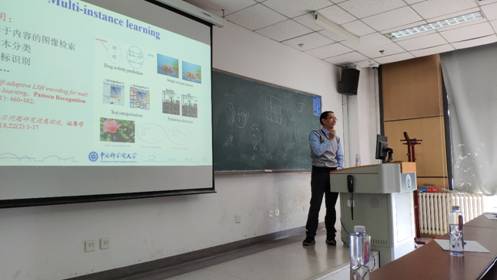讲座中,田英杰教授从大数据挖掘最前沿的深度学习模型出发,介绍了最新的理论和模型的进展以及典型应用,包括图像生成、风格迁移、机器作诗、作画、图像超分辨率、纹理嵌入等。丰富多彩的应用使在场师生多深度学习的强大能力有了非常直观的认识。