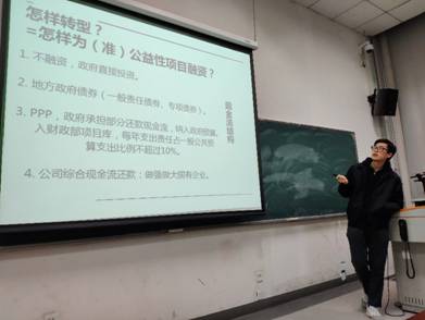 2018年11月25日晚6:30-8:20,国家开发银行总行扶贫金融事业部区域开发局处员,公司工程管理专业2012级本科生、哥伦比亚大学硕士王硕应邀到访,在沙河校区主教102进行了题为《融资平台转型与信贷项目风险》的讲座,由工程管理系副教授汪涛老师主持。