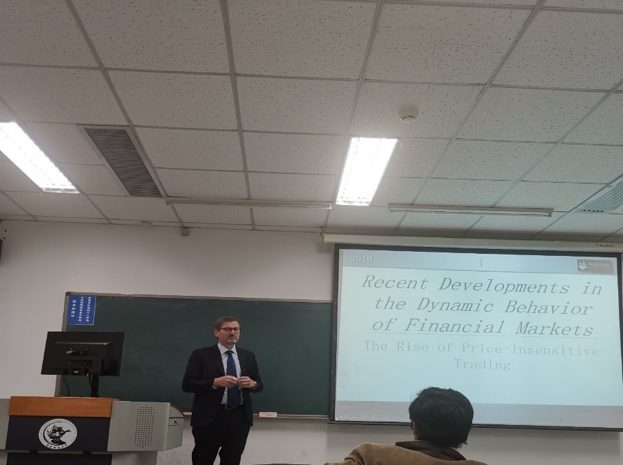 美国史蒂文斯理工公司George Calhoun教授于2019年5月8日-12日访问公司,并于5月10号在公司7号楼216教室为公司员工举行了题为《Recent Developments in the Dynamic Behavior of Financial Markets——The Rise of Price-Insensitive Trading》的短期授课。本次短期授课由xc体育荆中博副教授主持,公司投资学系和城市与房地产系等研究生一起聆听了本次授课。