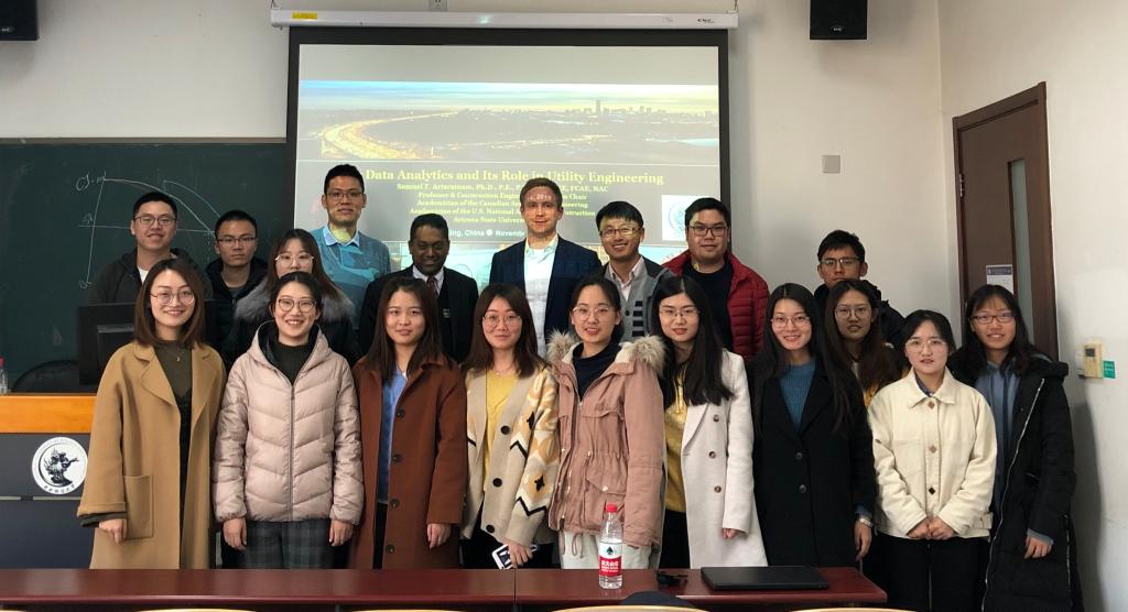 2019年11月14日下午,加拿大工程院院士、亚利桑那州立大学Samuel T. Ariaratnam教授应邀来访公司,并举行了关于“大数据分析及其在公用工程中的应用”专题讲座。讲座由工程管理系教师周鹏主持,工程管理系教师李玉龙、杨帆、王昊点评,工程与项目管理专业2019级研究生及部分本科生等参与了本次学习。