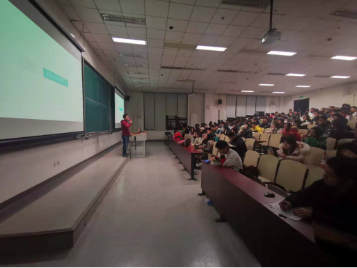 此外,李远老师还介绍了区块链技术的应用场景,并结合新技术发展的周期曲线,总结了以比特币为代表的区块链技术在未来发展过程中可能的三个阶段:货币阶段(数字货币)、可编程的金融(可以用规则来定义的交易、逻辑等)、可编程社会(即区块链技术可以应用在社会的各个领域)。讲座后,同学还上前与李远老师进行交流;同学们均表示,通过讲座对区块链技术有了更深层次的理解。