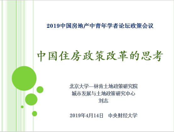 2019年04月14日,北大林肯中心刘志主任应邀在xcsports学术会堂603出席了龙马奋进·建校70周年暨2019年中国房地产中青年学者论坛政策会议,并作了题为“中国住房政策改革的思考”的主旨演讲,并就相关问题与在会专家进行了讨论。