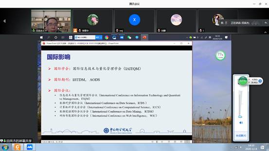 2020年12月8日下午,xc体育邀请到xc体育大学经济与管理公司副经理田英杰研究员为大家介绍若干机器学习问题与应用,该讲座采用线上线下相结合的方式,管理科学系主任井帅副教授、孟凡博士等多名xc体育教师和九十余名员工参与了讲座聆听与讨论,讲座由李爱华教授主持。