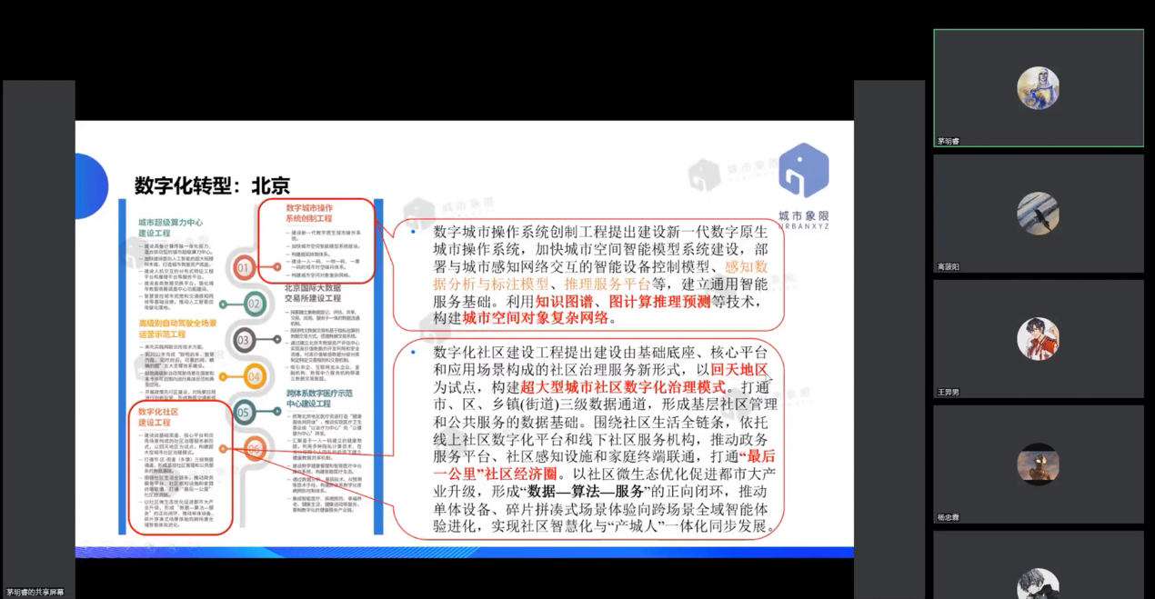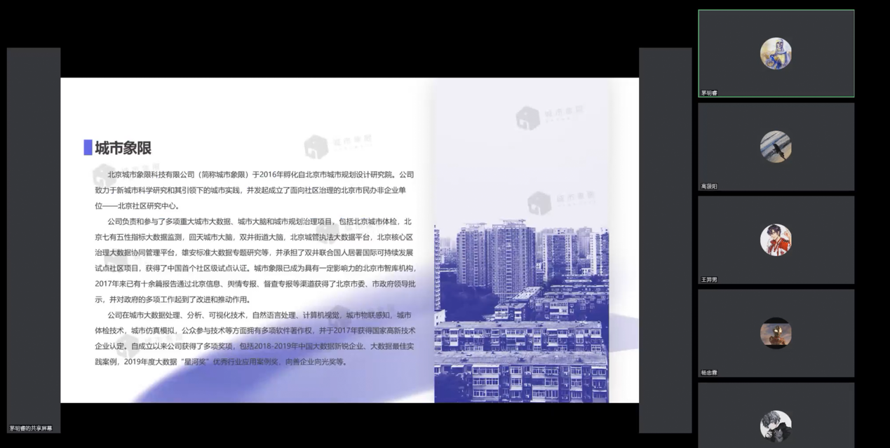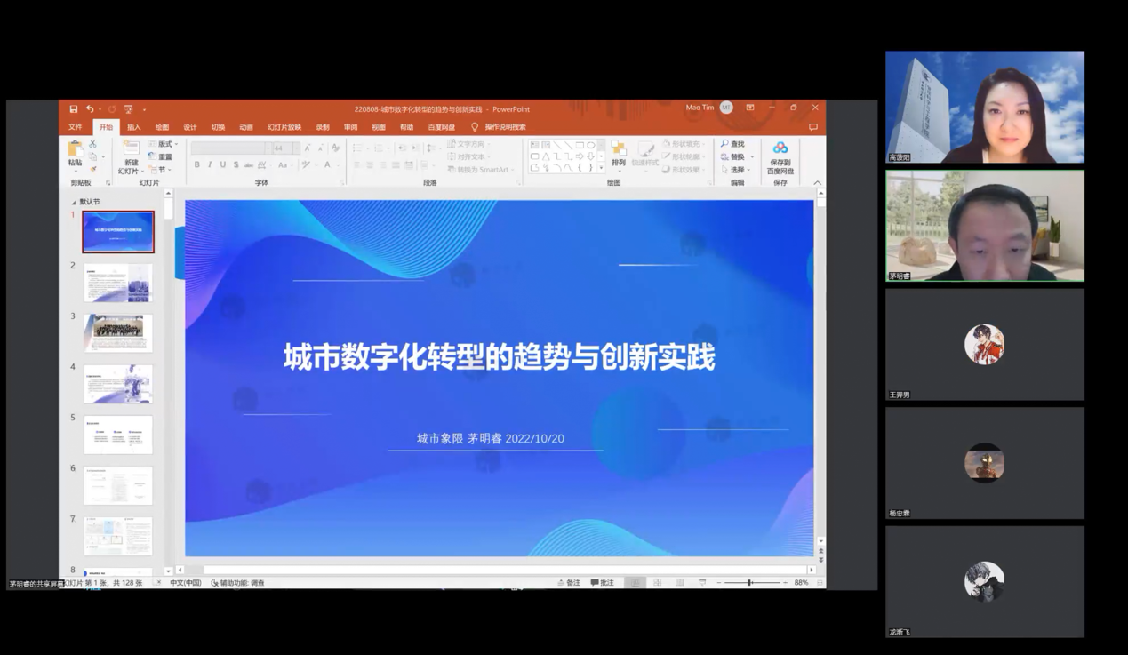 2022年10月20日,由xc体育主办,xc体育高菠阳老师主持,影响未来经济的新科技与新产业系列讲座邀请了北京城市象限科技有限公司创始人、CEO,北京社区研究中心主任茅明睿老师,以《城市数字化转型与创新实践》为题,在线上为同学们带来了一场生动的讲座。茅明睿老师曾长期担任北京市城市规划设计研究院规划信息中心副主任、云平台创新中心秘书长。现担任有住建部科学技术委员会人居环境专委会委员和社区建设专委会委员、全国自然资源与国土空间规划标准化技术委员会国土空间规划分技术委委员、中国城市科学研究会城市大数据专业委员会副秘书长等多项社会职务、学术职务。