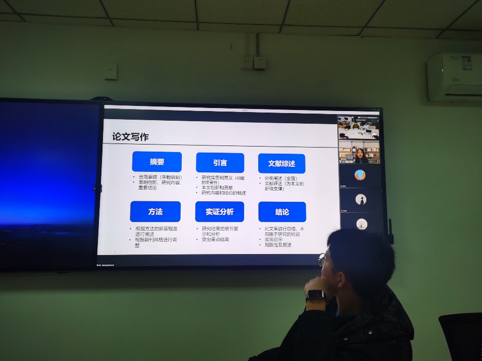 2022年11月2日晚上7时,北京工业大学李靖宇老师应邀为公司师生开展了一场题为《金融机构风险关联研究及论文写作研讨》的学术讲座。本次讲座由管理科学系李国文老师主持,报告采用线上线下结合形式,公司管理科学专业、许国志大数据英才班、投资学等专业的三十余位员工参与了此次讲座。