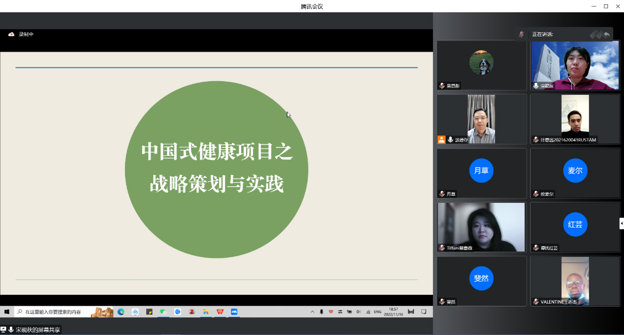 2022年11月16日晚7时,汲德存先生应邀在建设经济与管理系列论坛上做了主题为“中国式健康项目的战略策划与实践”的讲座。讲座由公司建设经济与管理系宋砚秋副教授主持,xc体育21级职工参加了本次讲座。