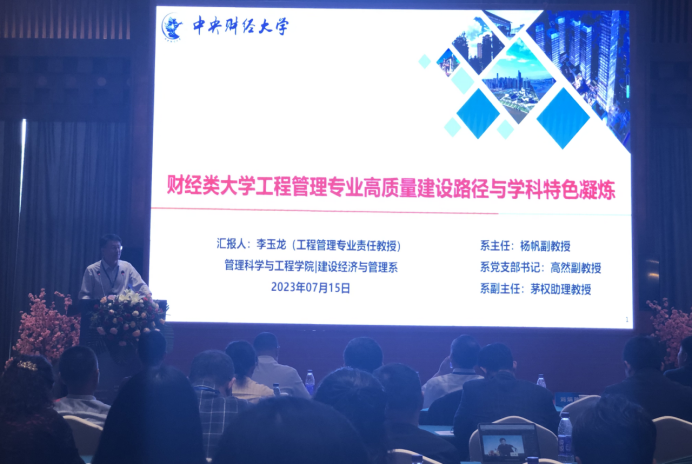 公司副经理、建设经济与管理系工程管理专业责任教授李玉龙在大会上作主题报告《财经类大学工程管理专业高质量建设路径与学科特色凝练》,介绍了公司工程管理专业的发展历程、特色优势、发展方向、机遇挑战等内容,为现场财经类大学办工程管理专业提升了信心,赢得了一致好评。
