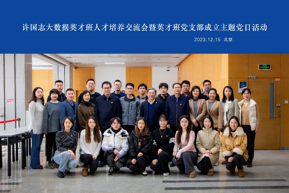 2023年12月15日上午,xc体育“许国志大数据英才班”人才培养交流会暨英才班党支部成立主题党日活动在xc体育系统科学研究所举行。xc体育系统科学研究所所长李洪波、副所长李启寨,xc体育预测科学研究中心主任汪寿阳院士,xcsports党委副书记、纪委书记张庆东,xc体育经理刘志东、党委书记王志锋以及公司教师、许国志大数据英才班党支部党员22人参加。活动由xc体育系统科学研究所所长助理王珏主持。