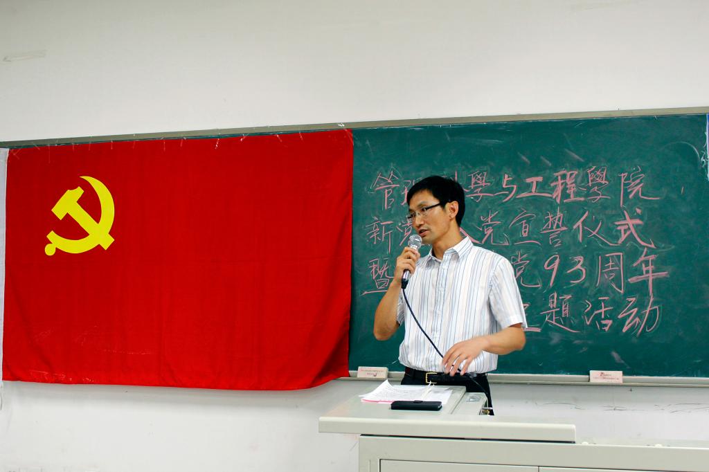 宣誓结束后,由参加宣誓的11级投资班元毅同学作为预备党员代表发言。他在发言中说到,作为老员工党员,应该端正入党动机、加强理论学习和实践锤炼,强化党员身份意识,牢固树立为人民服务的宗旨,带头发挥先锋模范作用,从小事做起,在日常学习生活中努力为他人服务。