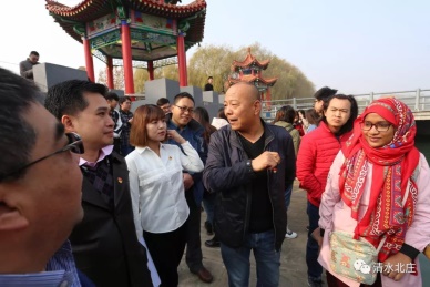 北庄镇党委副书记、镇长林立和相关镇政府工作人员带领师生参观了新农村建设的成果,考察了多个北庄镇惠民、富农以及践行“绿水青山就是金山银山”理念的投资项目。近年来,北庄镇深入贯彻习近平生态文明思想,用实际行动守好发展和生态两条底线,抓紧抓实抓牢河长制工作。通过把河道管理责任落实到领导干部个人、通过财政转移支付等措施鼓励村民打捞河内的污染物,在改善民生的同时,推动了生态环境持续改善。