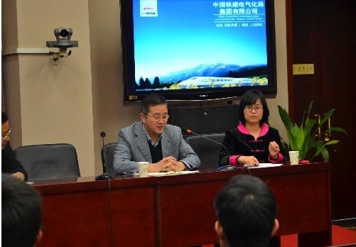 活动过程中,首先由电气化局集团海外部朱芙蓉副部长向同学们简单介绍了集团公司的大概情况。中铁建电气化局集团有限公司隶属于中国铁道建筑总公司,总部设在北京,在世界500强企业中排名100位,在全国各地拥有14家子公司、城市轨道交通分公司和14个局管工程指挥部,公司主营业务集中在通信信号工程方面,每年的产值可以达到20000多个亿,公司员工达到9000人。