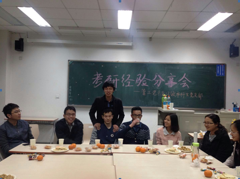 首先,学长学姐们进行了自我介绍。参加交流的研究生中有考本校的,也有从外校考进的;有考本专业的,也有跨专业的。