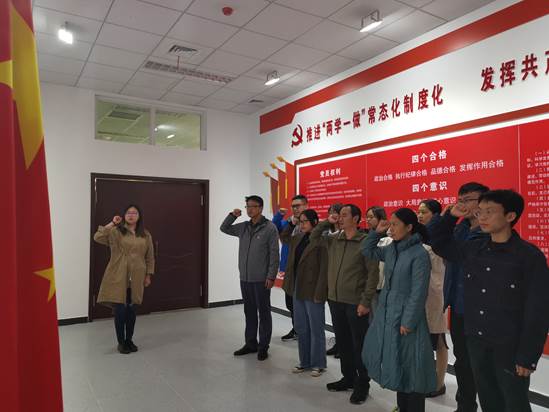 在活动的最后,支部党员面向党旗庄严宣誓,重温入党誓词,表达对党的忠诚、热爱及为共产主义事业奋斗终身的决心,提醒自己不忘初心、牢记使命,时刻谨记共产党员的责任和义务,在自己的岗位上尽职尽责,争做合格党员。