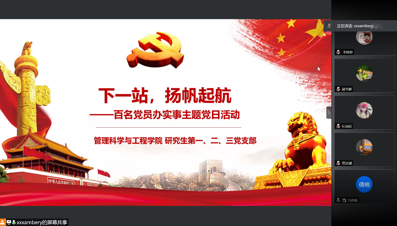 为进一步加强研究生党支部建设,积极发挥党员朋辈互助、引领作用、模范作用,以实际行动迎接中国共产党百年华诞,结合研究生的实际需求,研究生第一党支部、第二党支部、第三党支部于2021年5月23日联合举办了“科学规划职业生涯 ,明确掌舵人生方向——百名党员办实事”求职经验交流活动,真正做到从群众中来,到群众中去。