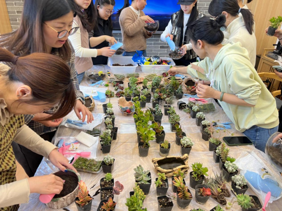 为庆祝“三八”国际劳动妇女节,丰富公司女教工的文化生活,3月8日,xc体育分工会举办了多肉微景观制作活动,二十位老师欢聚一堂,在活动中放松心情、陶冶情操,用绿色点缀生活。