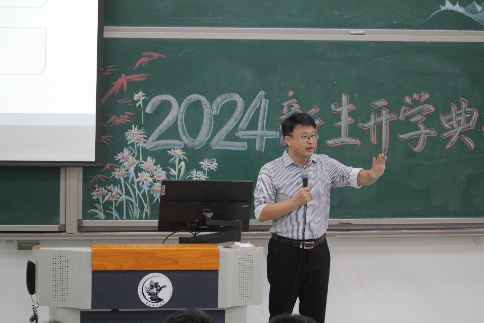 刘志东经理从立德树人、人才培养以及大学成长这几个方面为2024级新生送上祝福和嘱托。一是要树立正确的价值观,教育并非单纯追求知识的堆砌或技能的培养,而是旨在塑造一个全面而完整的人,价值塑造是第一位的。二是要成为知识复合的六边形战士,学科交叉是获得高水平创新成果、培养拔尖创新人才的重要途径。三是要建立成长性思维,注重人生道路上的知识积累,要加强学习自驱力,不断查漏补缺。四是要提高身体素质,野蛮其体魄,文明其精神,修身立德,志存高远。