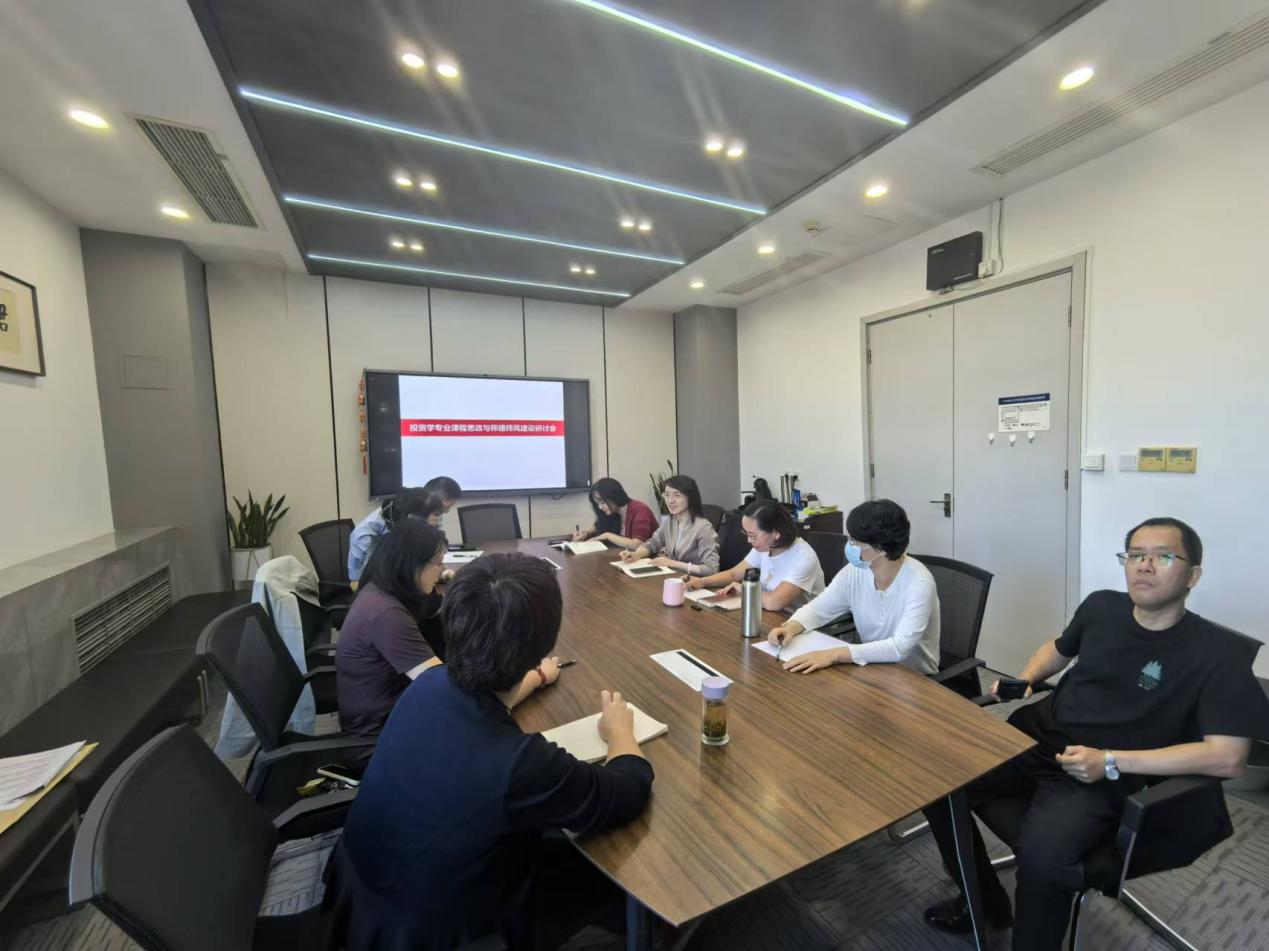 为深入贯彻中共中央国务院2024年8月26日《关于弘扬教育家精神加强新时代高素质专业化教师队伍建设的意见》,深刻理解理解习近平总书记关于教育重要论述的科学内涵,提升投资系教师队伍的思想政治素质和公司产品能力,2024年9月25日投资系在公司4号楼318组织开展“投资学专业课程思政与师德师风建设”专题研讨会。本次研讨会由投资系及投资教工党支部联合召开,投资系主任谢娜和党支部书记欧变玲共同主持会议,投资系全体教师和党员同志参加研讨会。