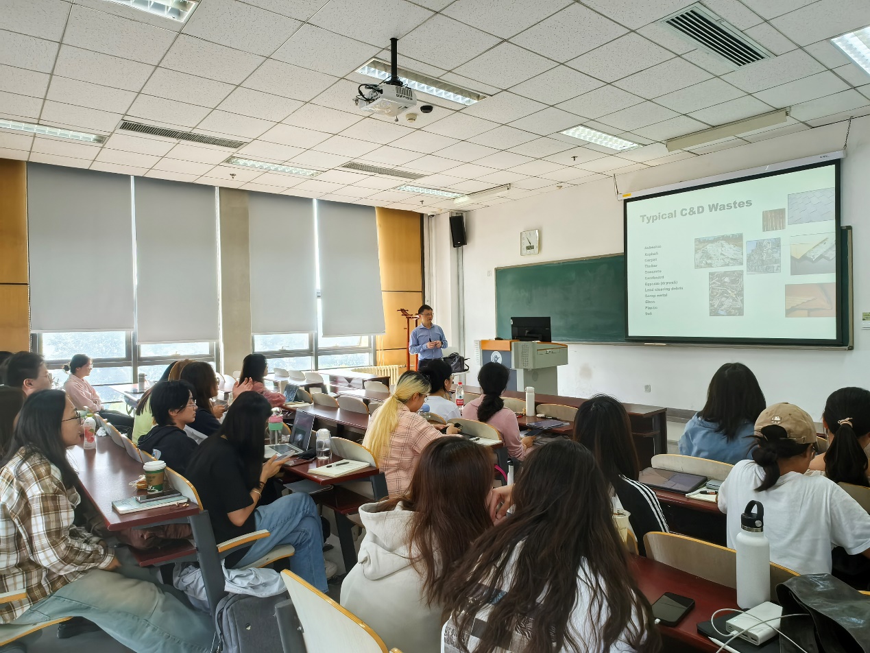 9月24日上午11点在沙河校区主教409,左剑教授面向工程管理22级本科生做了《Construction and demolition waste management》的学术报告,由建设经济与管理系副主任茅权主持。建筑业产生了大量的固体废弃物,同时也消耗了大量的建筑材料。因此,对施工和拆除废弃物的管理一方面可以减少相关影响,另一方面可以缓解对天然材料的消耗需求。报告介绍了建筑和拆除废弃物管理的基础知识,包括废物管理层次、主要废物流、关键技术,并提供了一些可持续材料的例子。