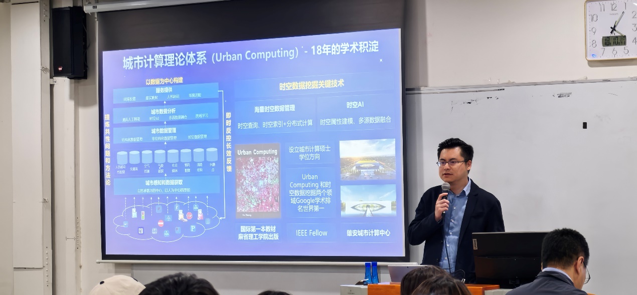 10月10日下午,xc体育在沙河校区公司楼6号楼106教室举办高端学术论坛,邀请了京东集团副总裁郑宇教授作了题为《城市计算:释放城市数据要素价值,激发城市新质生产力》的报告。郑宇教授现任京东集团副总裁、京东城市总裁,是IEEE Fellow、ACM杰出科学家、国家“万人计划”科技创新领军人才、享受国务院特殊津贴专家,同时也是上海交通大学讲座教授、香港科技大学和南京大学的兼职教授。郑教授开辟了城市计算领域,目前担任人工智能旗舰刊物ACM TIST主编。本次论坛由xc体育经理刘志东教授主持。