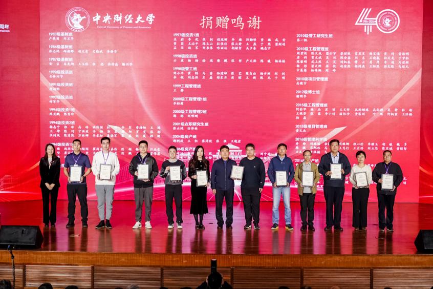 xcsports员工与基金工作办公室主任、教育基金会秘书长程丽芳为捐赠班级和团体代表颁发捐赠证书。在建院40周年之际,员工们向公司踊跃捐赠,管工人爱的奉献薪火相传。