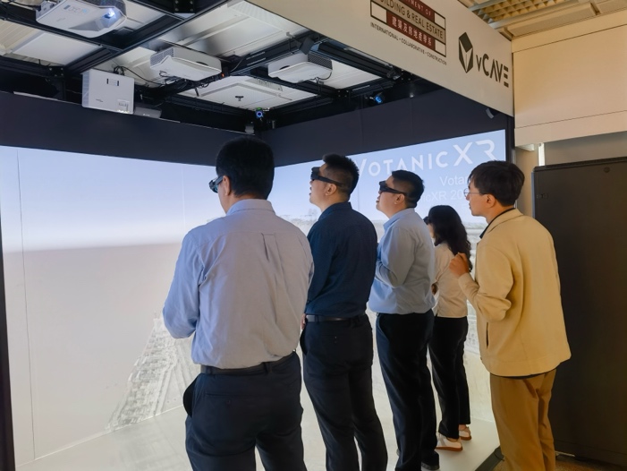 实验室建设经验交流是本次活动的一大亮点。Hung-lin Chi副教授带领代表团教师深度体验了vCAVE实验室。香港理工大学重点分享了其在建筑环境实验室、虚拟现实实验室的建设经验,尤其是在模拟复杂建筑环境和可持续建筑设计方面的优势。刘志东经理则介绍了xcsports拟建实验室的基本条件。这一环节的交流,不仅展示了双方在科研设施上的实力,也为未来的实验室资源共享和联合实验提供了可能性。最后,双方在员工培养理念和办学方法上都获得了新的启发,并表示未来将探索在员工交流、联合培养等方面的具体合作。