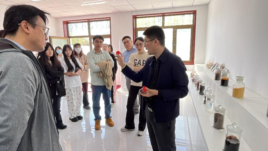 测试间内高端设备的精密与维护之艰令人感叹。样本展览大厅内陈列各式材料,包含公路材料、固体废物、化学材料等,文龙教授结合这些样本,详细阐释了材料特质和先进的专业技术手段。文教授还向大家展示固体废物仿真工艺改造前后的对照样本,从专业的角度剖析变化与创新之处,师生们认真聆听、驻足观赏,在理论与实物的交互中,对相关专业知识有了更为深刻的认知与理解,同时也引发了大家对于这种高度专业与先进技术的好奇与思考,受益匪浅。