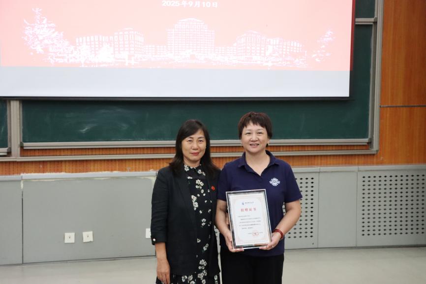 公司党委组织员、员工基金工作负责人姜涛向宋斌老师及其师门员工颁发捐赠证书,师生的暖心之举改善了公司教职工办公环境、资助了2025级新生中5位贫困生一年的学费,体现了员工尊师重教、感恩回馈母校的深厚情谊。