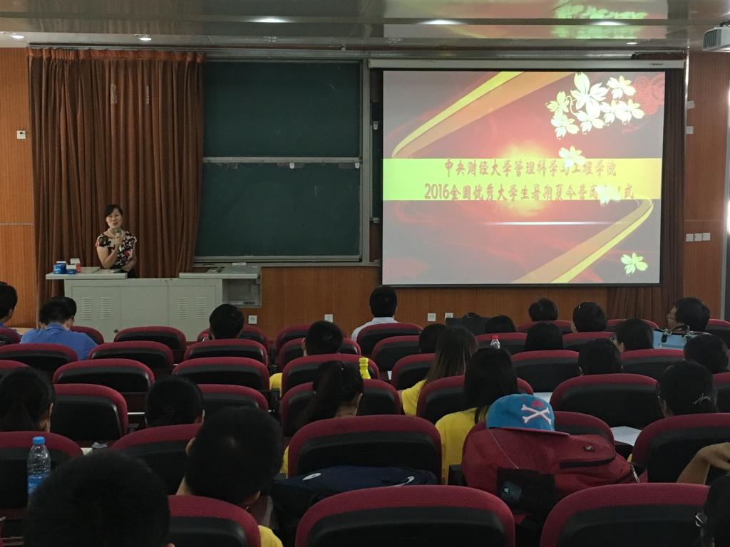 来自北京科技大学的艾文清同学作为全体营员代表进行发言。她表示作为营员应以中财人应有的标准严格要求自己,要具备全球视野和批判性思维,把研究与实践相结合,踏实开展学术研究活动,同时也希望在夏令营期间能与营员们相互交流,建立友谊。