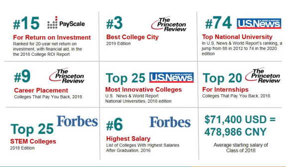 ✩福布斯杂志2019年发布,最佳城市大学排名第三位