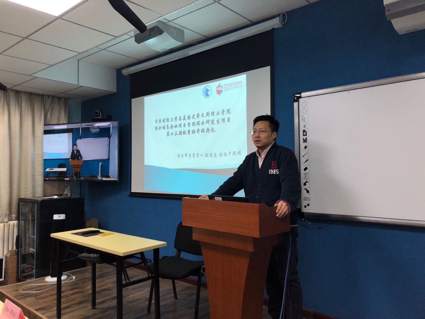 典礼开始,作为中财史蒂文斯项目的中方负责人,xc体育副经理陈俊华教授对十三期秋季班同学们表示了热烈的欢迎。接下来,陈俊华副经理介绍了史蒂文斯项目的基本情况。从2004年开始,中财史蒂文斯项目已经走过了十几年的时间,培养了一大批优秀的学员,并受到业界、用人单位和学员等各方的一致好评。未来xcsports和史蒂文斯理工公司将继续通力合作,培养具备扎实理论基础、精通专业知识、具有国际视野的高水平管理人才。陈俊华副经理同时就项目的教学组织安排、团队队伍、选课缴费、申请毕业等相关注意事项向同学们做了详细介绍。