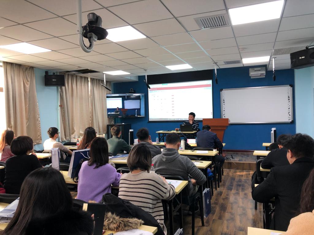 接下来,项目管理老师王勤秋老师介绍了史蒂文斯理工公司Canvas系统的使用注意事项及关于选课缴费的常见问题,并给员工们讲解了在中财学习生活的一些注意事项,以及图书馆等资源的使用,以帮助同学们可以更好更快地适应在中财的学习生活。