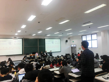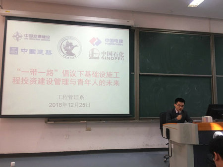 中国交建施总介绍了中国交建的发展历史和现状,并结合自己六十多个国家的工作经历,向同学们介绍了如何将工程、管理和投融资相结合,以发挥财经类院校工程管理专业员工的自身优势,展望了国际工程的巨大市场和未来前景,并欢迎同学们加入中交建系统。